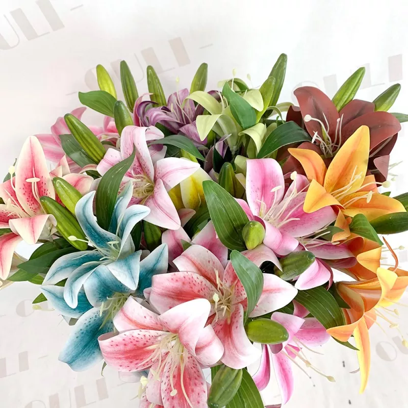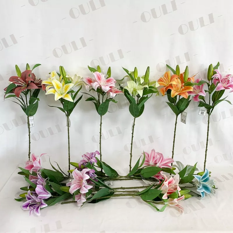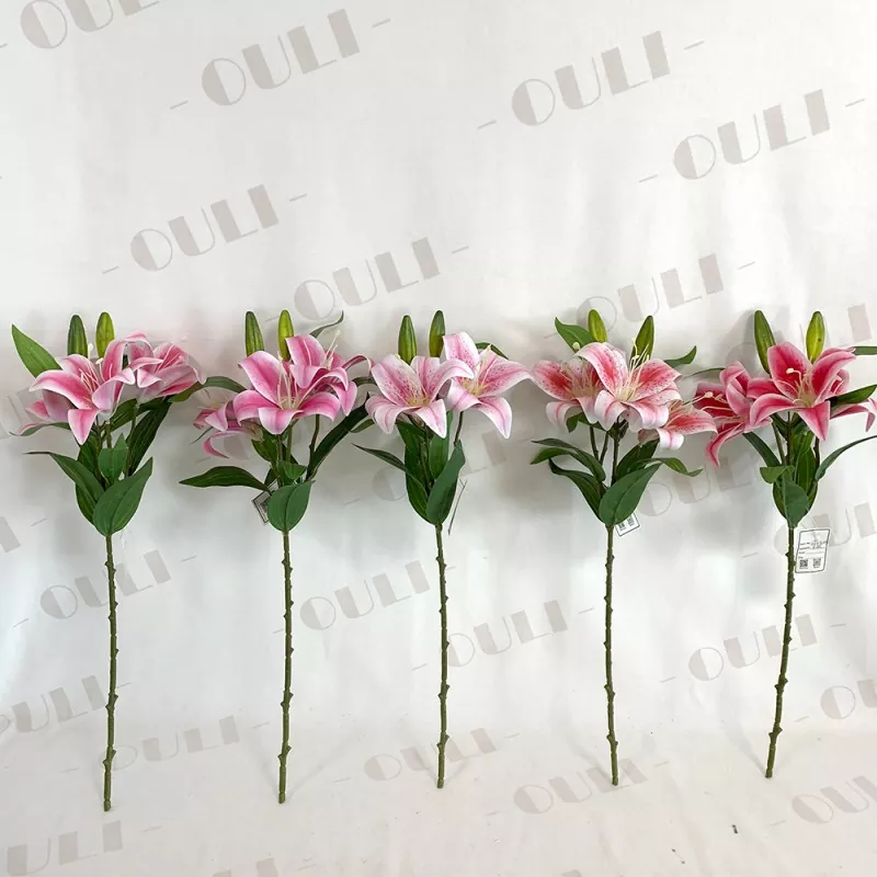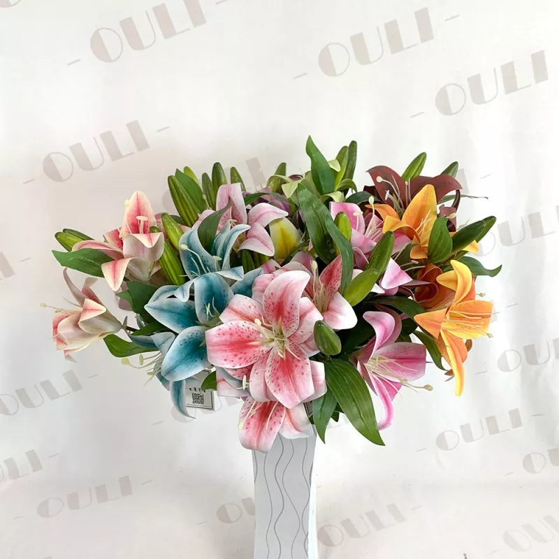 PU Lily Flower Head: Lili buatan OULI® PU kami mempunyai rasa simulasi, tekstur penuh, dan warna -warna cerah, yang sangat sesuai untuk ruang komersial, gerbang perkahwinan, atau perkiraan bunga perkahwinan yang memerlukan kesetiaan yang tinggi.
