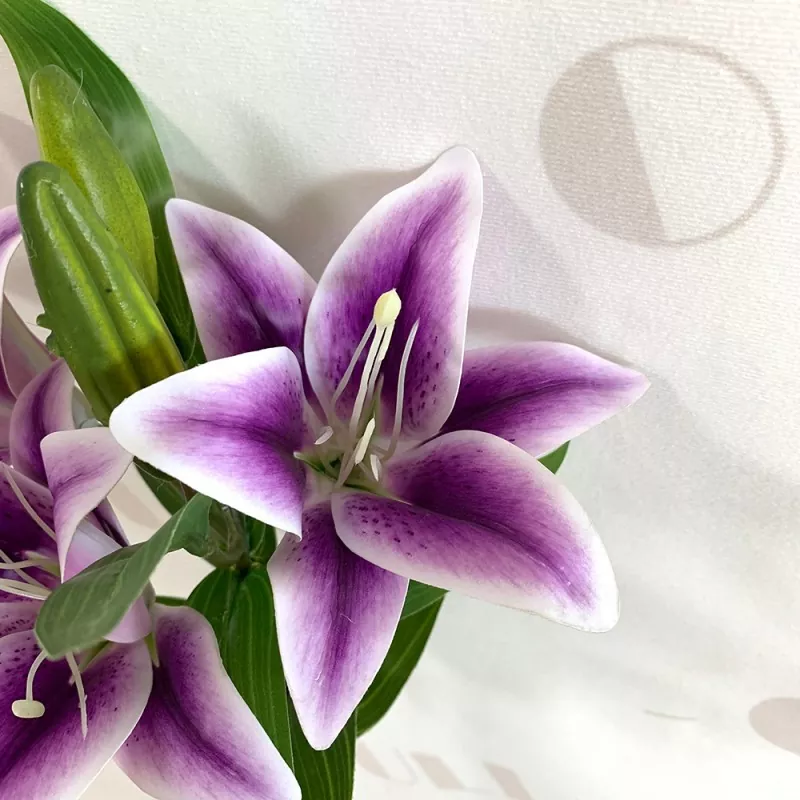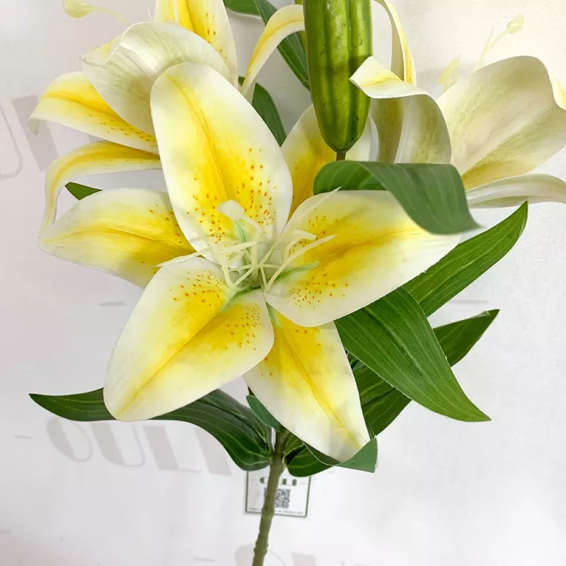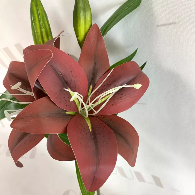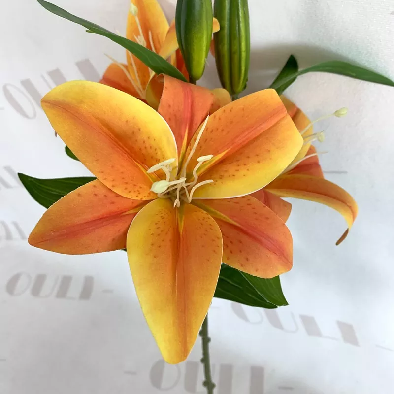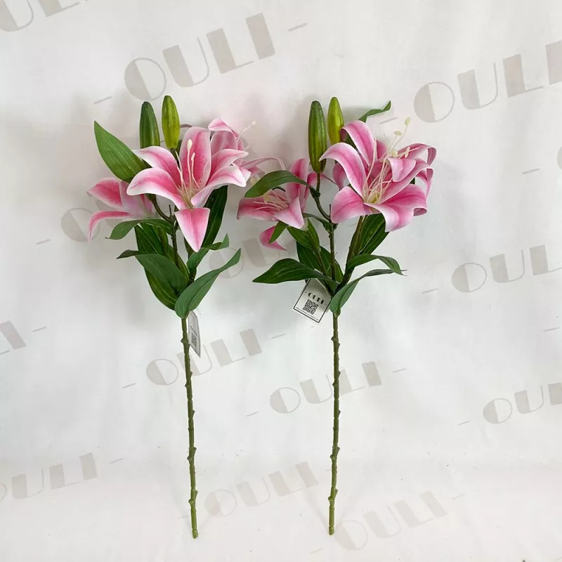 Apabila memilih bunga lily buatan, sebagai tambahan kepada warna dan penampilan, bahan juga merupakan faktor penting yang mempengaruhi kesannya. Bunga buatan Oli Lily ini secara khusus menyediakan dua proses kepala bunga, lilk buatan sutera dan PU buatan Lily, untuk memenuhi keperluan hiasan pelanggan yang berbeza.