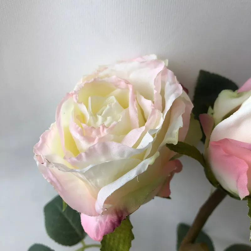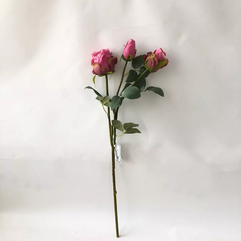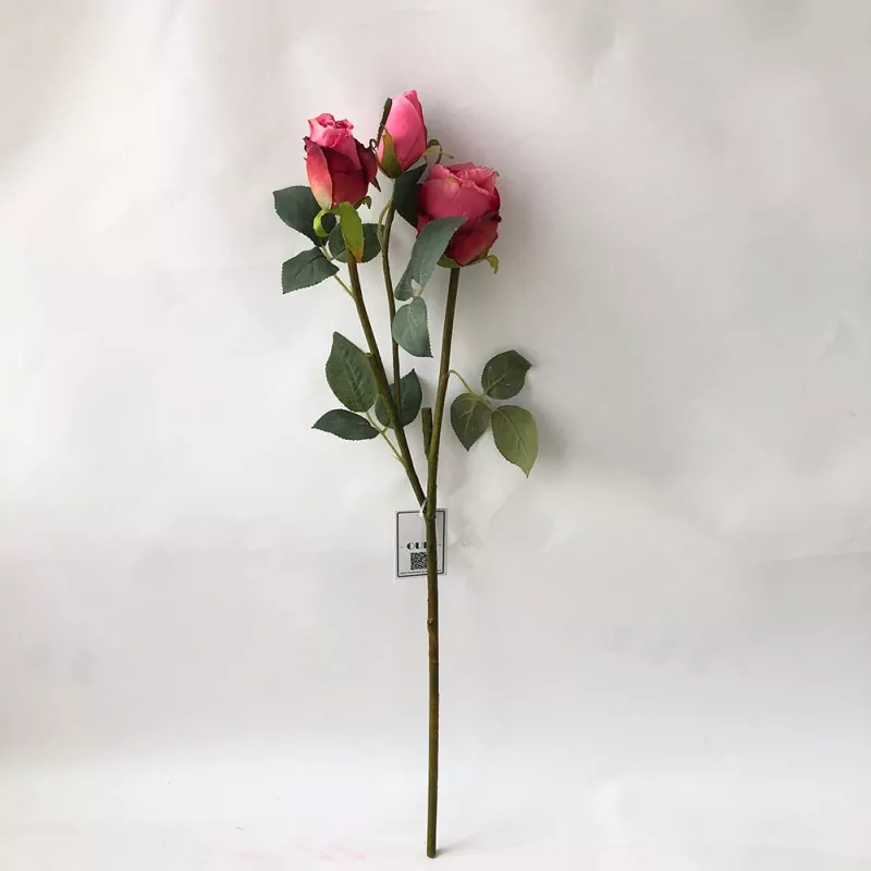 1. Reka bentuk bunga tiga kepala: Setiap cabang semburan mawar buatan ini mempunyai tiga kepala bunga, dengan diameter 2cm, 4cm dan 5cm masing-masing. Kepala bunga diatur secara semulajadi dan indah, sesuai untuk susunan bunga vas atau padanan percuma DIY.